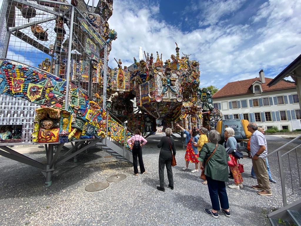 Une visite du Colossal d'Art Brut ORGANuGAMME II de l'artiste d'art singulier Danielle Jacqui a été proposée par Jessica Mondego, membre du comité et chargée de projet à La Ferme des Tilleuls.