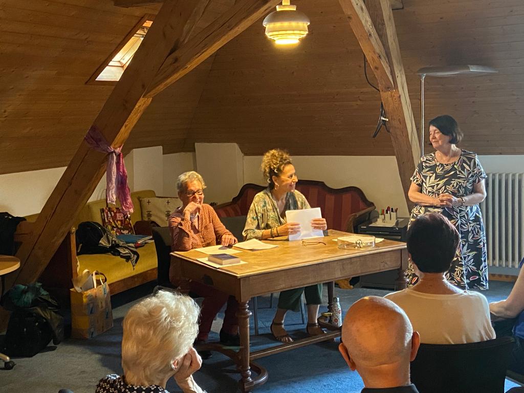 Retour en images sur la Balade en lectures et histoires proposée par Catherine Seylaz-Dubuis et Rita Gay le 8 juin 2023 à la Maison de la Femme-Fondation Madeleine Moret (Lausanne).